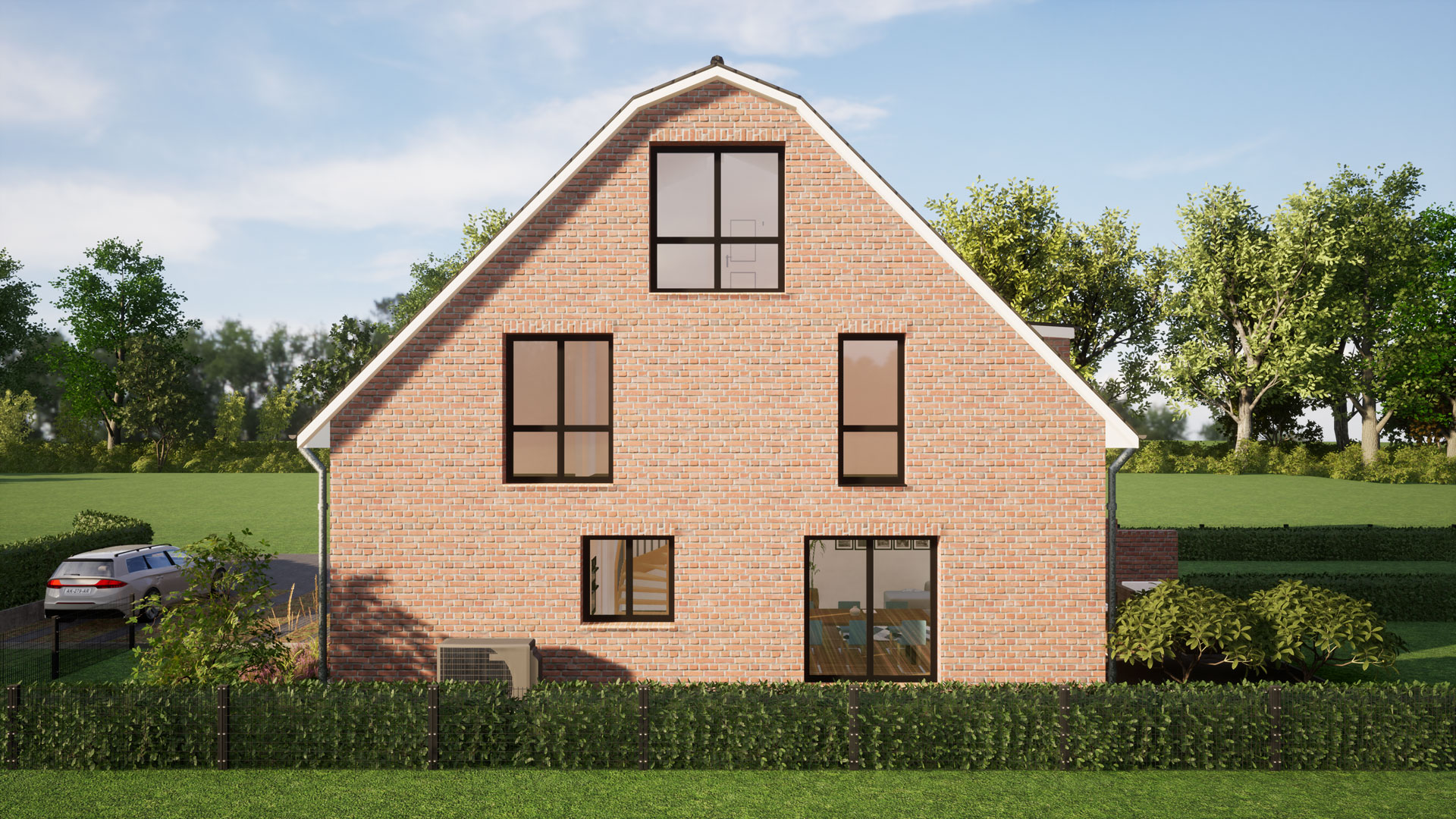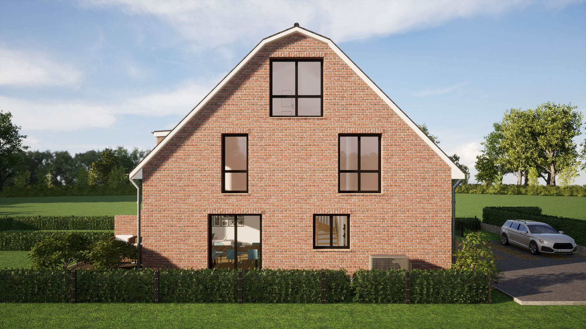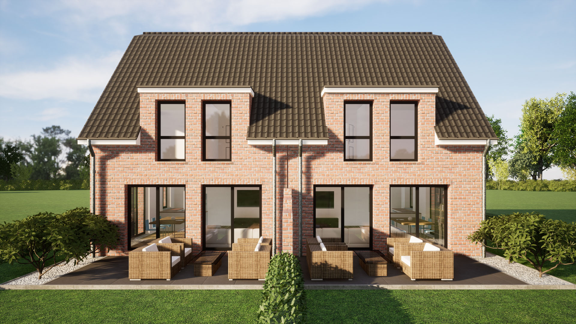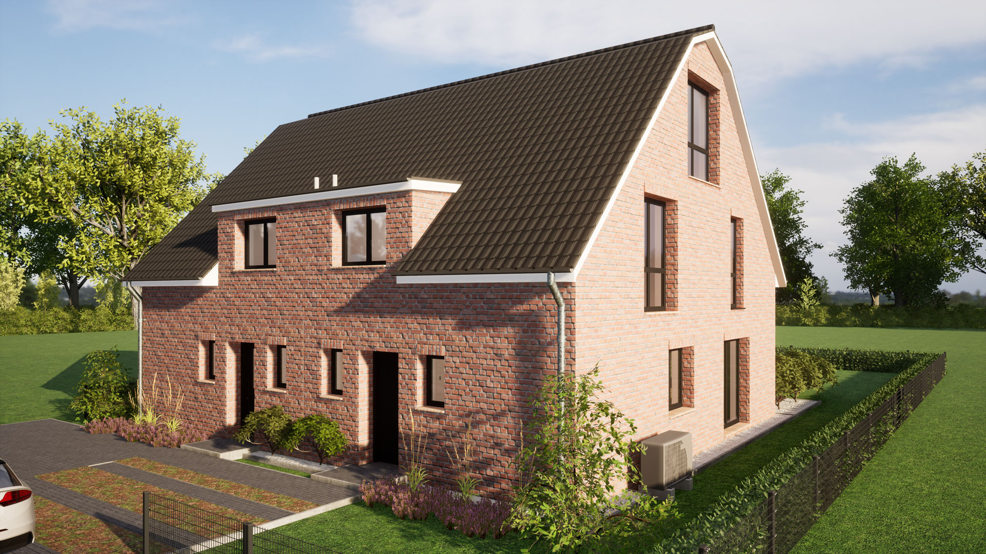 • je DHH eine stehende Gaube mit bodentiefen Fenster zum Garten und eine stehende Gaube über beide Doppelhaushälfte zum Eingang